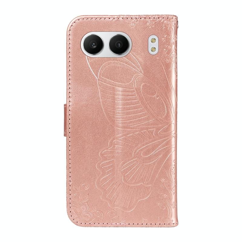 Θήκη τηλεφώνου από δέρμα με ανάγλυφο σχέδιο πεταλούδας Swallowtail για OnePlus Nord 4 5G (Ροζ χρυσός)