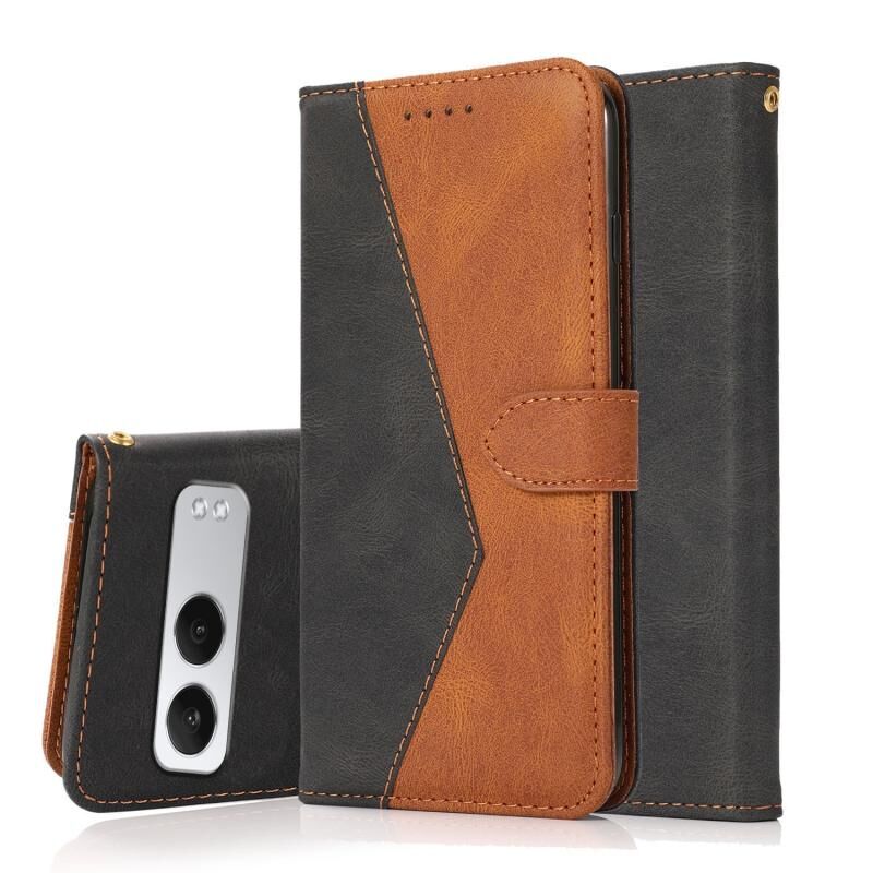 Για OnePlus Nord 4 Διπλό χρώμα ραφή δέρμα τηλέφωνο υπόθεση (μαύρο καφέ)