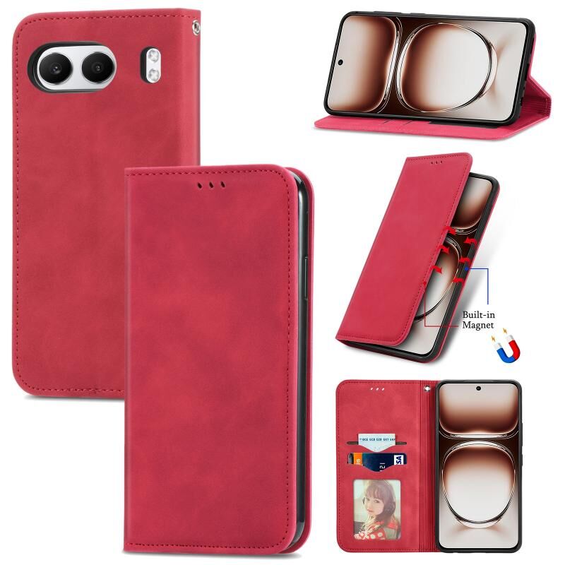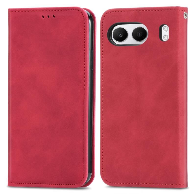 Θήκη τηλεφώνου από δέρμα με μαγνητικό κλείσιμο και αίσθηση retro για OnePlus Nord 4 (Κόκκινο)