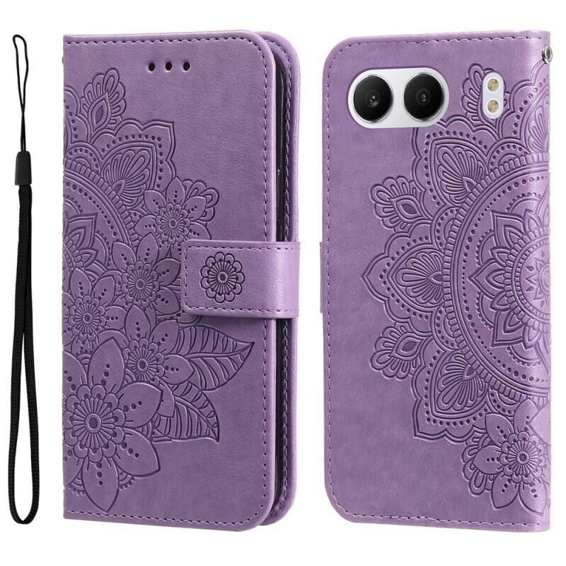 Για OnePlus Nord 4 Επτά-πέταλο λουλούδια ανάγλυφη δερμάτινη θήκη τηλεφώνου (ανοιχτό μωβ)