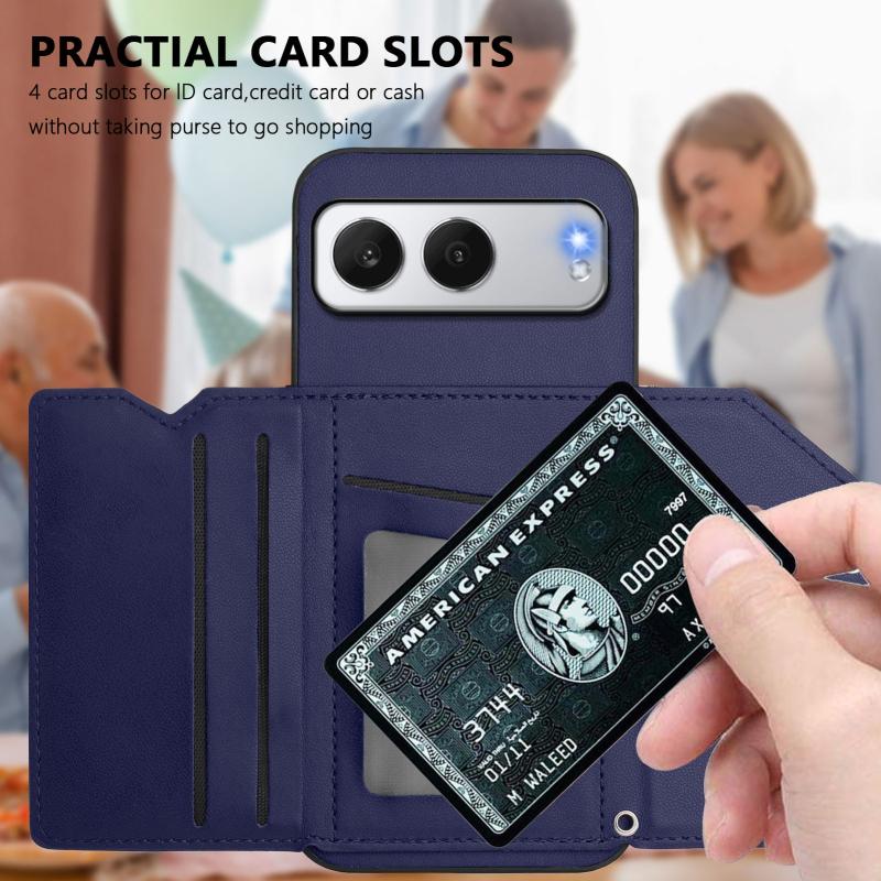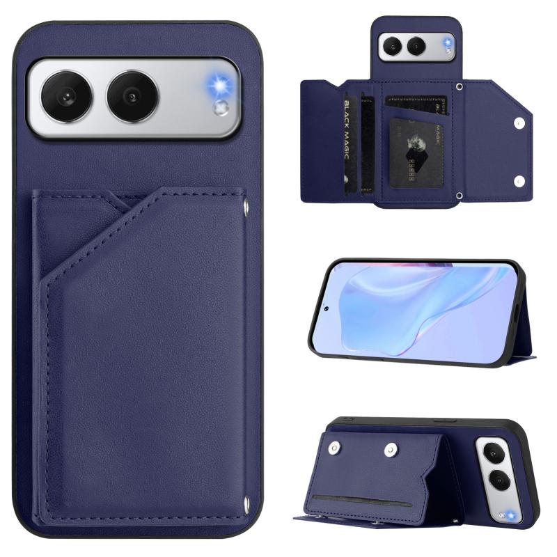 For OnePlus Nord 4 Skin Feel Four Card Slots Phone Case with Wrist Strap(Blue)