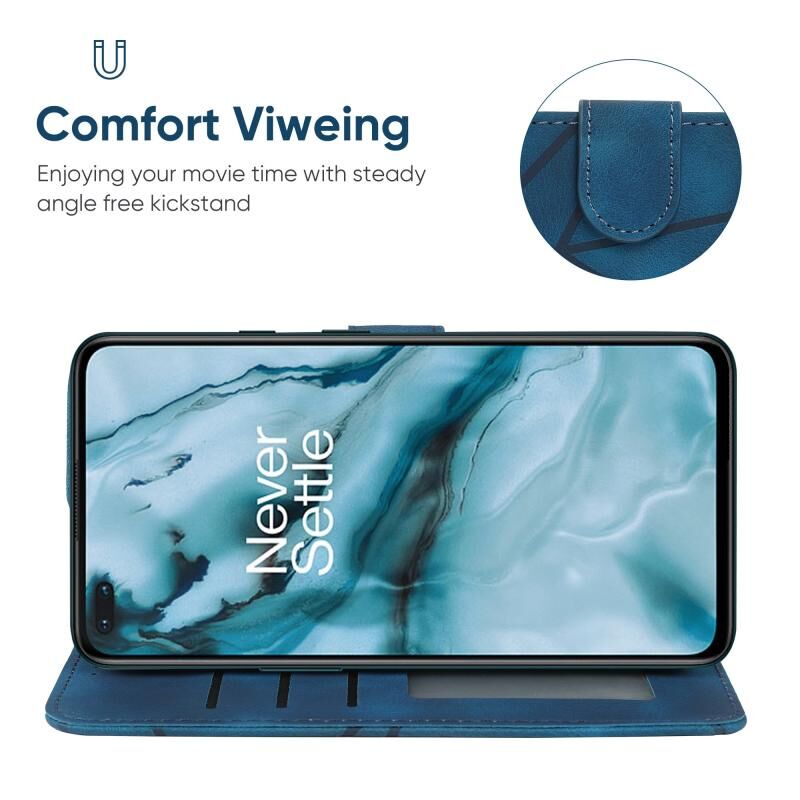 Για OnePlus Nord 5G Skin Feel γεωμετρικές γραμμές δερμάτινη θήκη τηλεφώνου (μπλε)