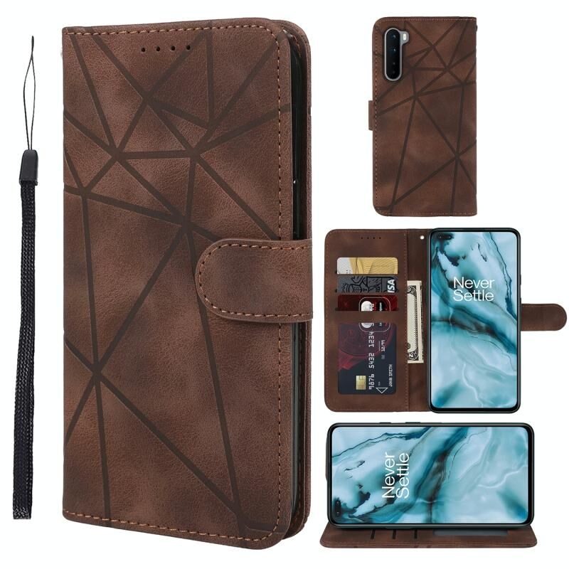 Για OnePlus Nord 5G Skin Feel γεωμετρικές γραμμές δερμάτινη θήκη τηλεφώνου (καφέ)