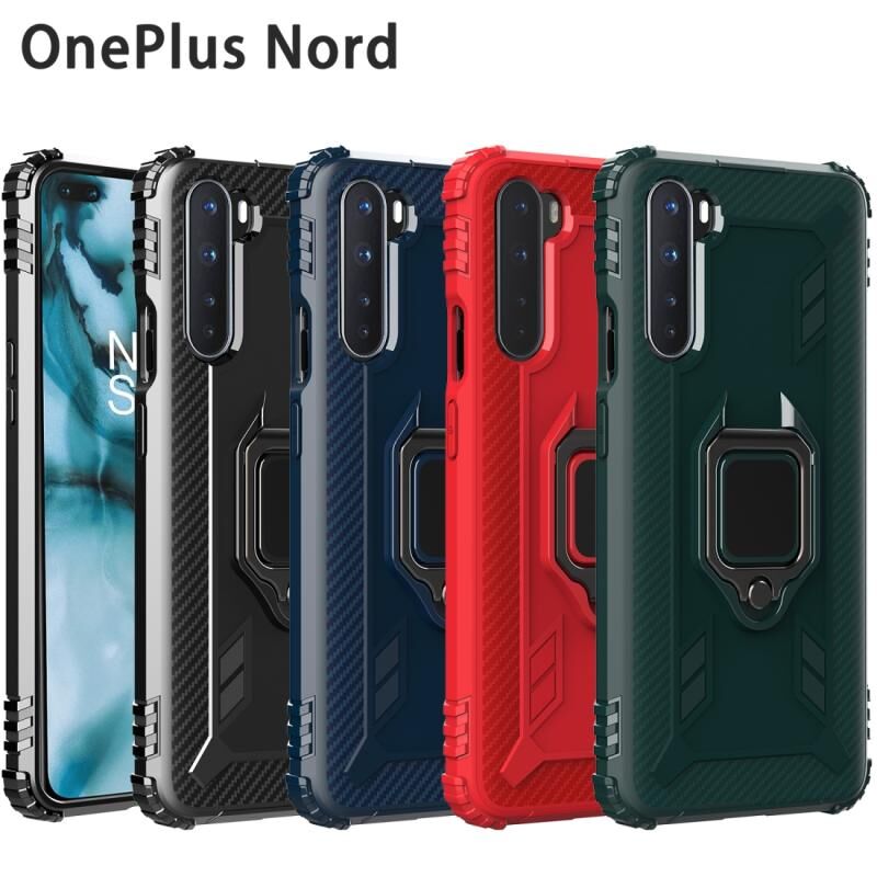Για OnePlus Nord Carbon Fiber Προστατευτική θήκη με 360 μοίρες περιστρεφόμενο δαχτυλίδι κάτοχος (πράσινο)