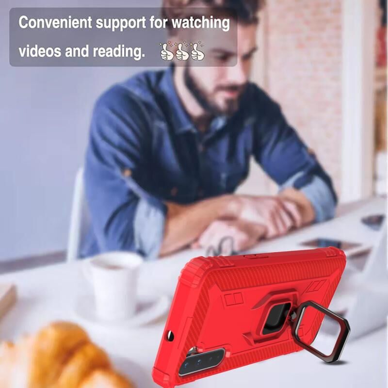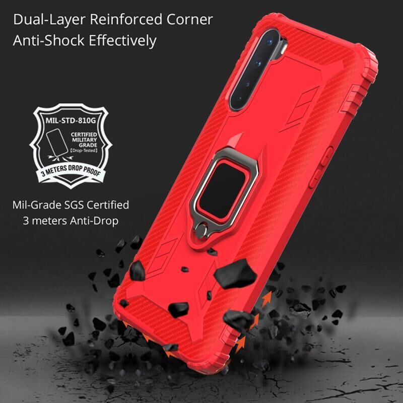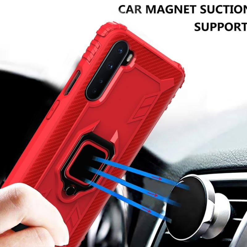 Για OnePlus Nord Carbon Fiber Προστατευτική θήκη με 360 μοίρες περιστρεφόμενο δαχτυλίδι κάτοχος (κόκκινο)