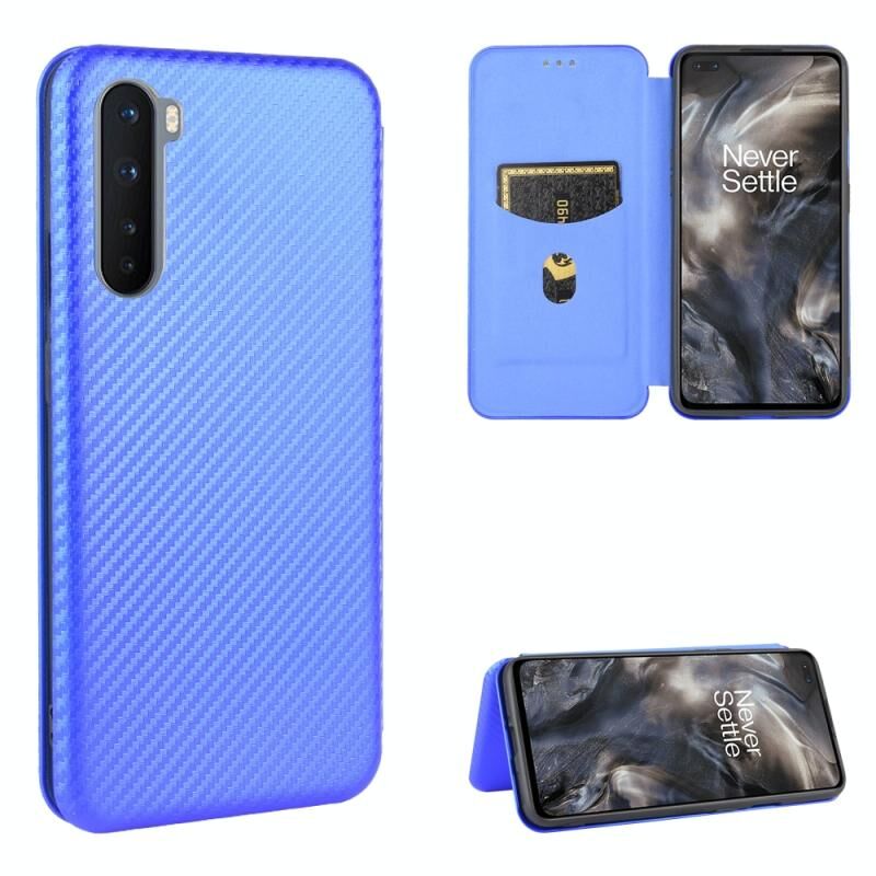 Για OnePlus Nord Carbon Fiber υφή οριζόντια Flip TPU + PC + PU δέρμα υπόθεση με υποδοχή κάρτας (μπλε)