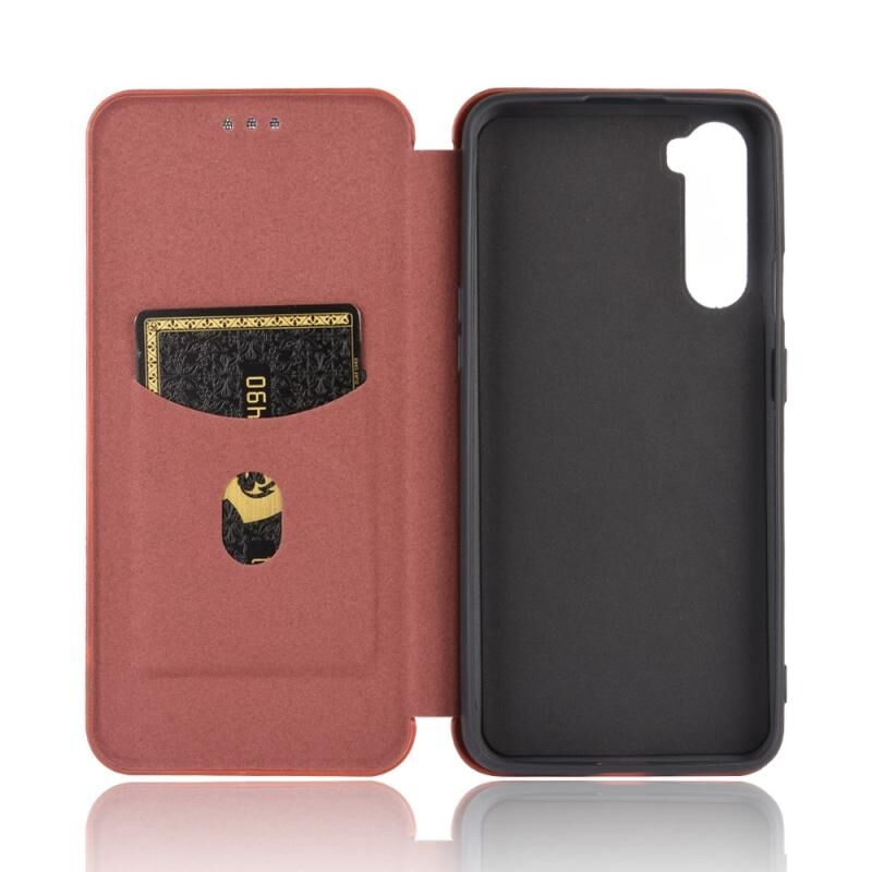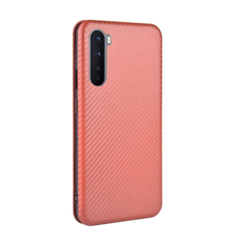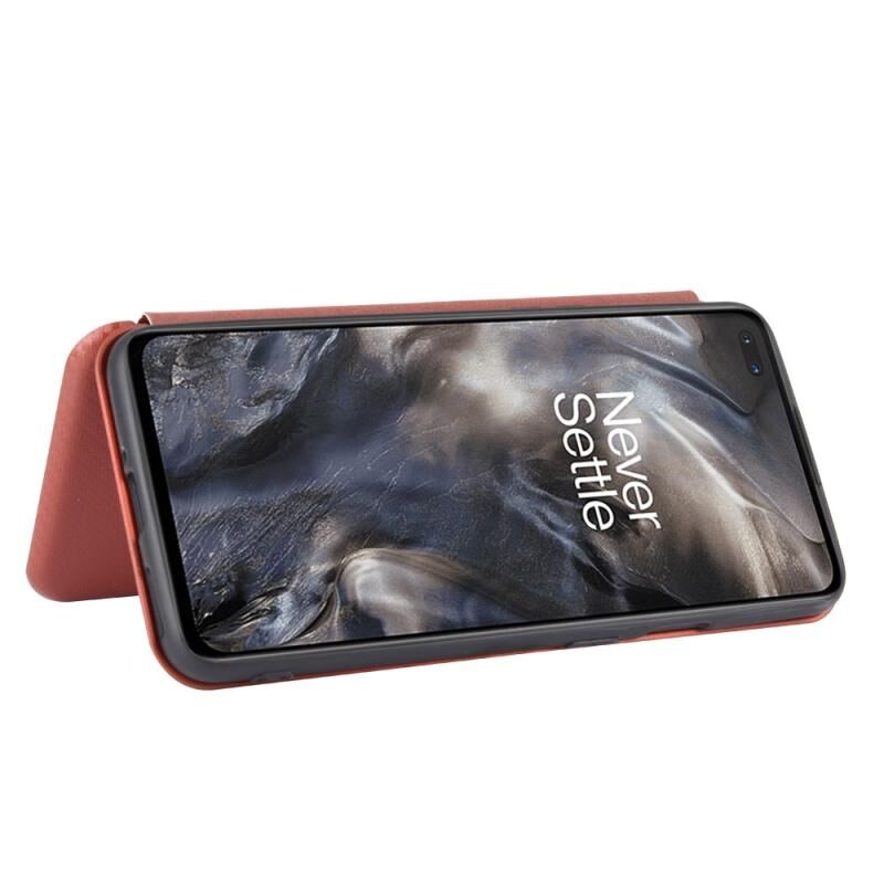 Για OnePlus Nord Carbon Fiber υφή οριζόντια Flip TPU + PC + PU δέρμα υπόθεση με υποδοχή κάρτας (καφέ)