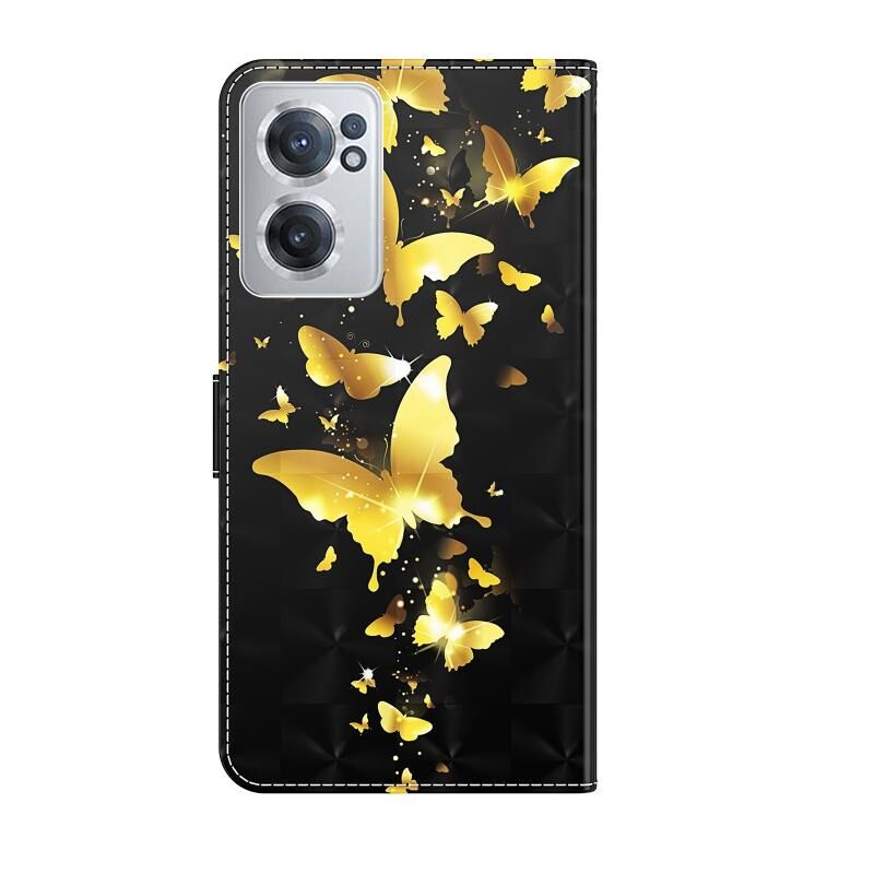 Θήκη τηλεφώνου για OnePlus Nord CE 2 5G, TPU + Δερμάτινη PU με σχέδιο 3D ζωγραφικής (Χρυσή Πεταλούδα)