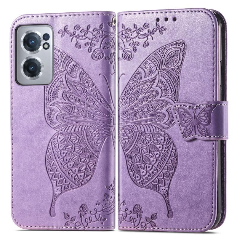 Για OnePlus Nord CE 2 5G πεταλούδα αγάπη λουλούδι ανάγλυφο δερμάτινη θήκη τηλεφώνου (Light Purple)