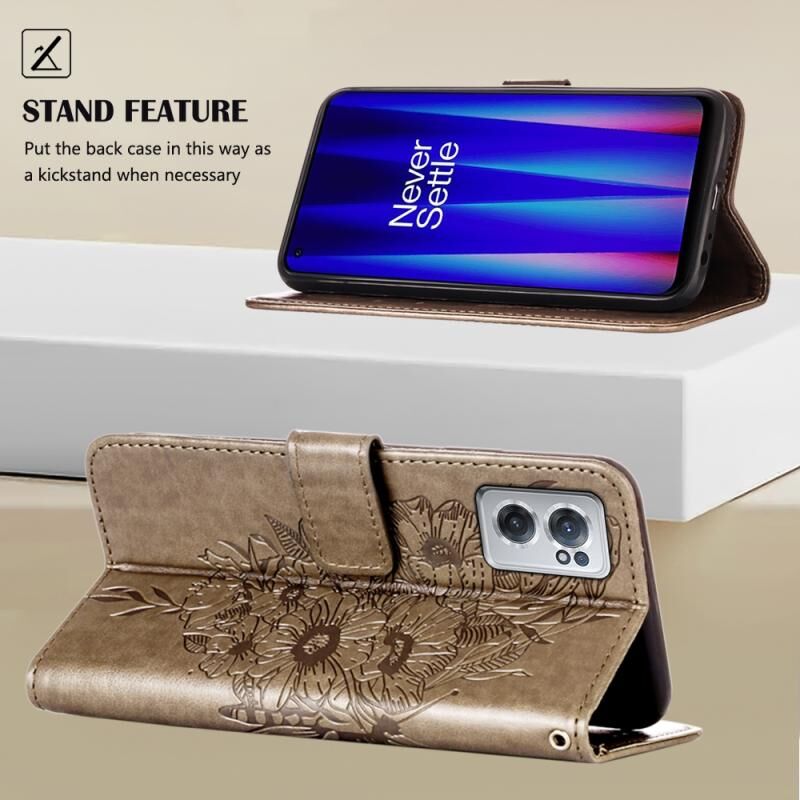 Για OnePlus Nord CE 2 5G ανάγλυφη πεταλούδα δερμάτινη θήκη τηλεφώνου (γκρι)
