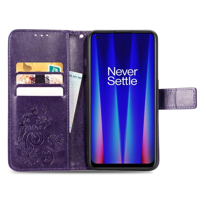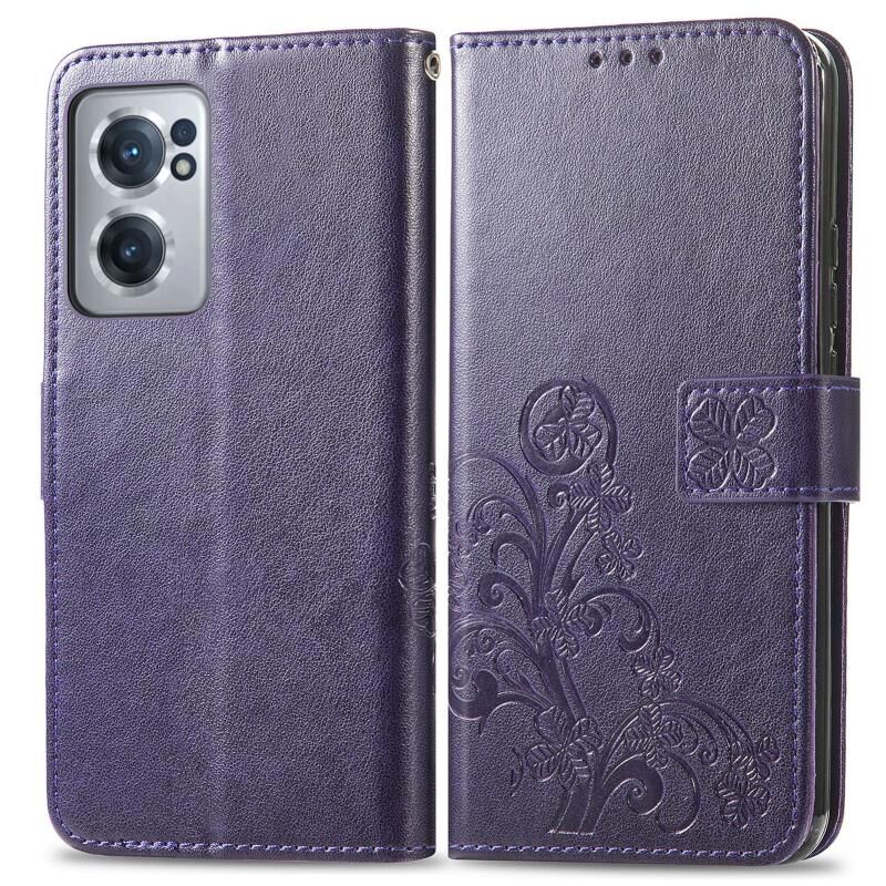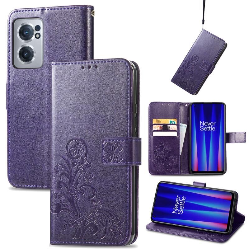 Για OnePlus Nord CE 2 5G τετράφυλλο κούμπωμα ανάγλυφο πόρπη δερμάτινη θήκη τηλεφώνου (μωβ)