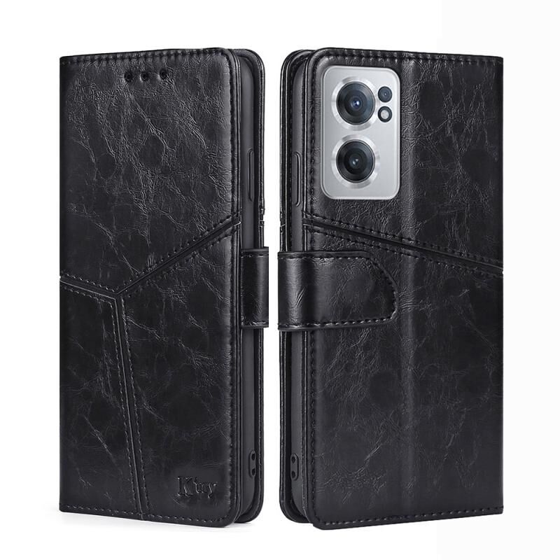 Για OnePlus Nord CE 2 5G γεωμετρική ραφή οριζόντια Flip TPU + PU δέρμα τηλέφωνο υπόθεση (μαύρο)