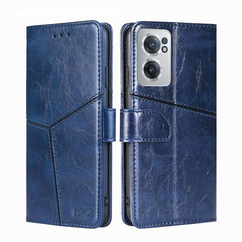 Για OnePlus Nord CE 2 5G γεωμετρική ραφή οριζόντια Flip TPU + PU δέρμα τηλέφωνο υπόθεση (μπλε)