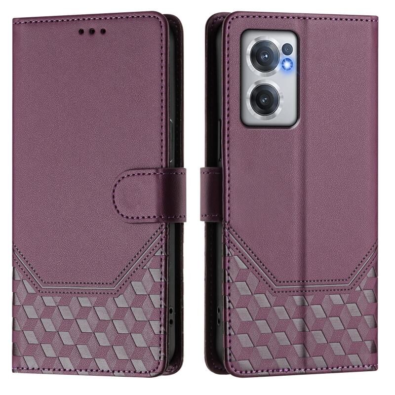 Για OnePlus Nord CE 2 5G κηρήθρα ανάγλυφη RFID δερμάτινη θήκη τηλεφώνου (Violet)