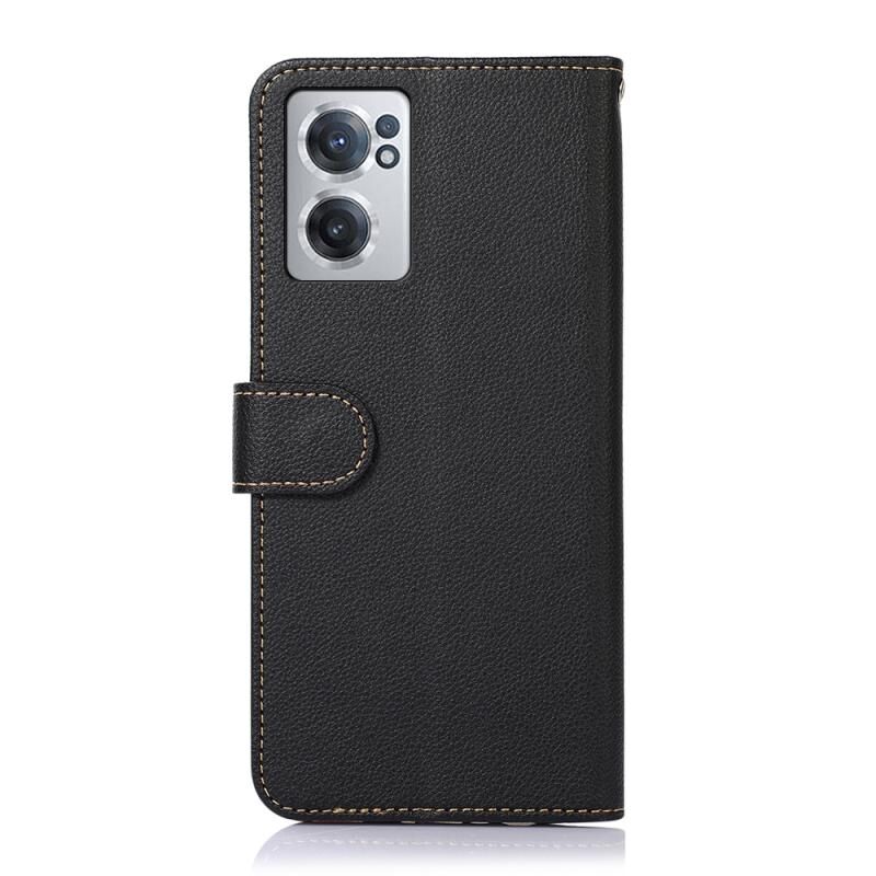 Θήκη κινητού τηλεφώνου OnePlus Nord CE 2 5G KHAZNEH με δέρμα υφής Litchi και προστασία RFID (Μαύρο)