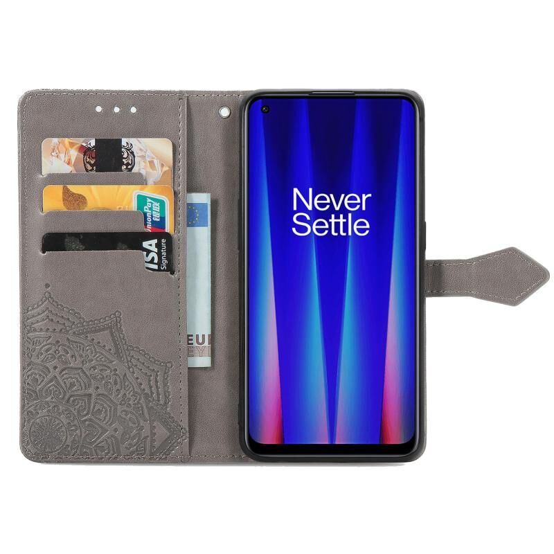 Για OnePlus Nord CE 2 5G Mandala λουλούδι ανάγλυφο δερμάτινη θήκη τηλεφώνου (γκρι)