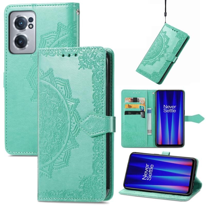 Για OnePlus Nord CE 2 5G Mandala λουλούδι ανάγλυφο δερμάτινη θήκη τηλεφώνου (πράσινο)
