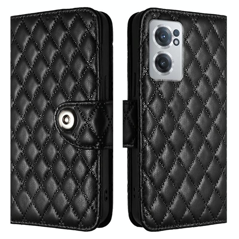 Για OnePlus Nord CE 2 5G Rhombic υφή Flip υπόθεση τηλεφώνου δέρμα με κορδόνι (μαύρο)