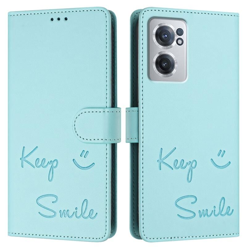 Για OnePlus Nord CE 2 5G Χαμόγελο ανάγλυφο RFID δερμάτινη θήκη τηλεφώνου (πράσινο χρώμα)
