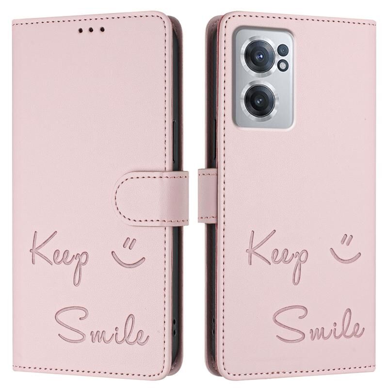Για OnePlus Nord CE 2 5G Χαμόγελο ανάγλυφο RFID δερμάτινη θήκη τηλεφώνου (ροζ)