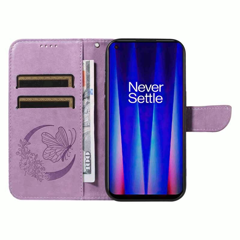 Θήκη τηλεφώνου από δέρμα με ανάγλυφο σχέδιο πεταλούδας Swallowtail για OnePlus Nord CE 2 5G (Μπλε)