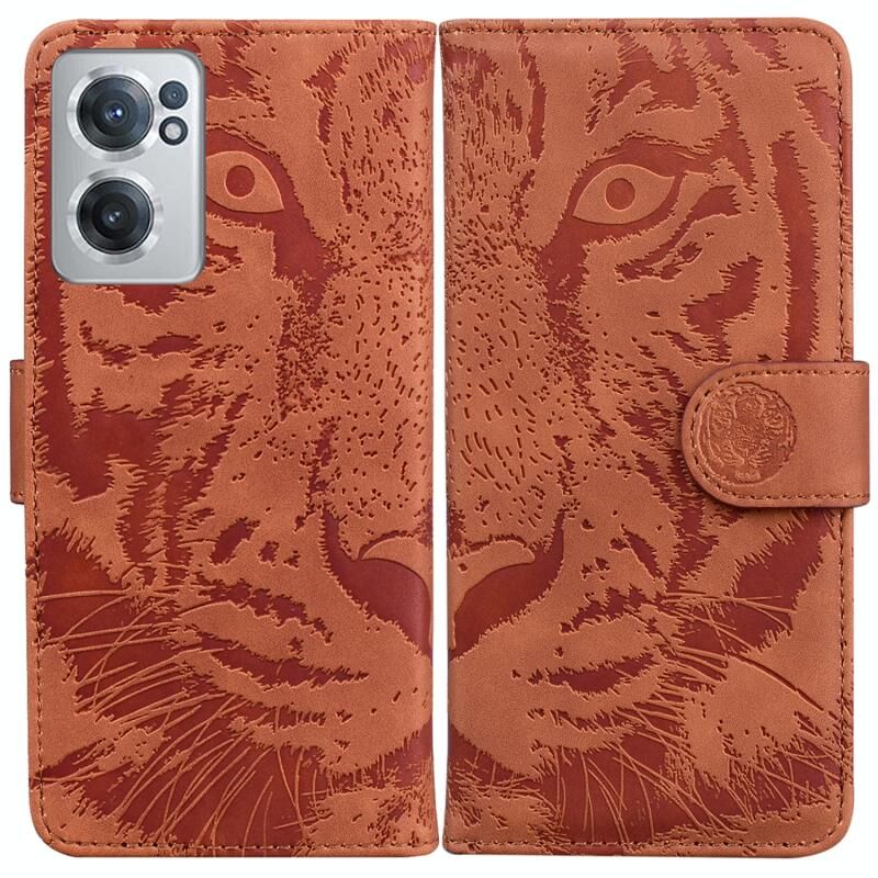 Για OnePlus Nord CE 2 5G Tiger ανάγλυφο μοτίβο οριζόντια Flip δέρμα τηλέφωνο υπόθεση (καφέ)