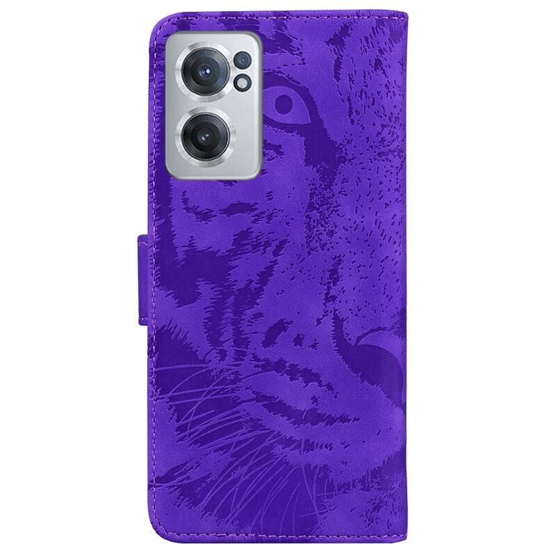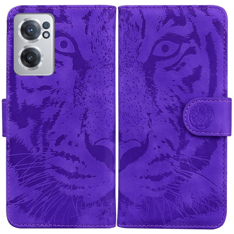 Για OnePlus Nord CE 2 5G Tiger ανάγλυφο μοτίβο οριζόντια Flip δέρμα τηλέφωνο υπόθεση (μωβ)