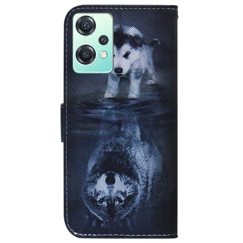 Θήκη τηλεφώνου από δέρμα με έγχρωμο σχέδιο για OnePlus Nord CE 2 Lite 5G (Λύκος και Σκύλος)