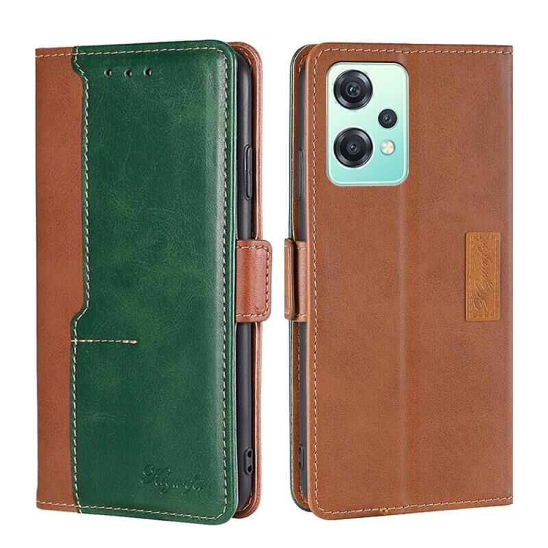 Για OnePlus Nord CE 2 Lite 5G αντίθεση χρώματος πλευρά πόρπη δερμάτινη θήκη τηλεφώνου (ανοιχτό καφέ + πράσινο)