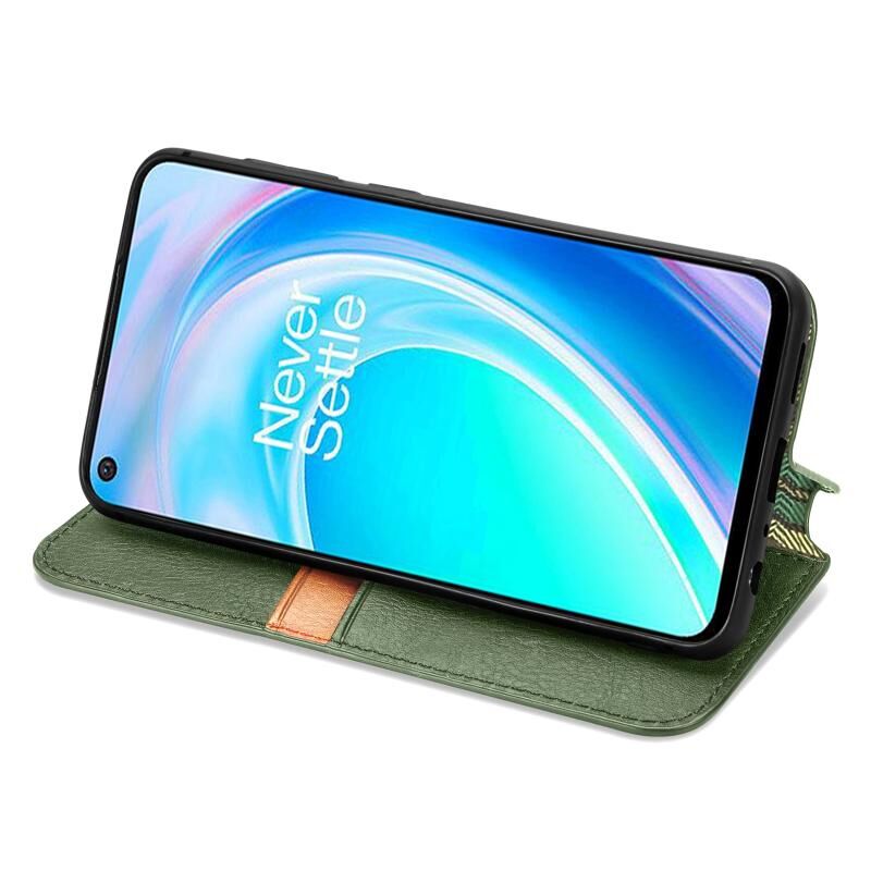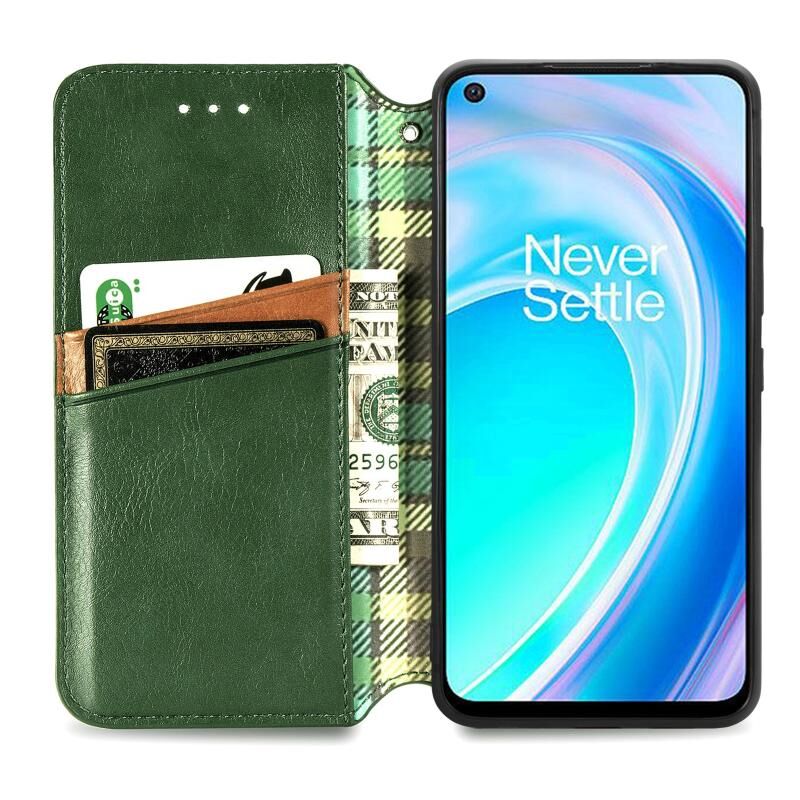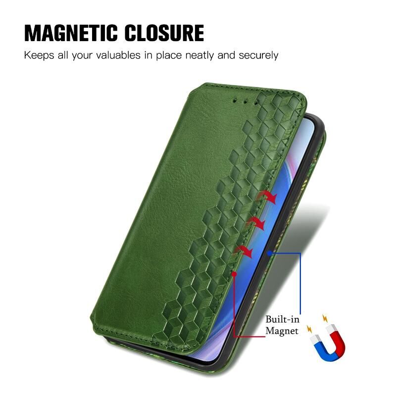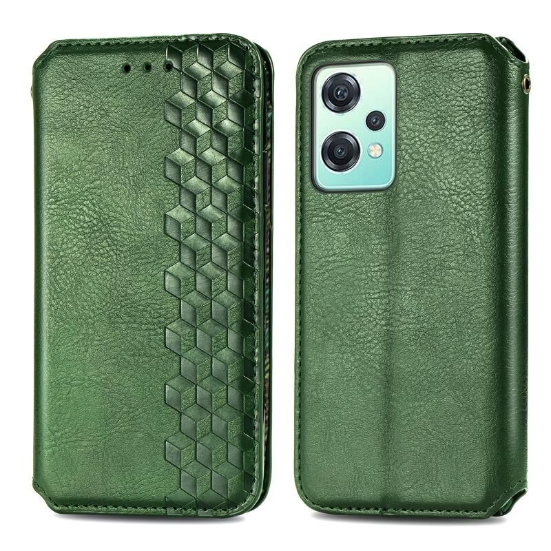 Για OnePlus Nord CE 2 Lite 5G κυβικό πλέγμα πιέζεται μαγνητική δερμάτινη θήκη τηλεφώνου (πράσινο)
