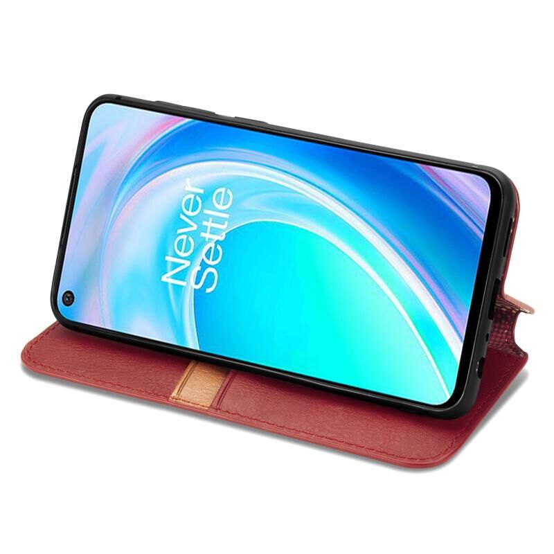 Για OnePlus Nord CE 2 Lite 5G κυβικό πλέγμα πιέζεται μαγνητική δερμάτινη θήκη τηλεφώνου (κόκκινο)