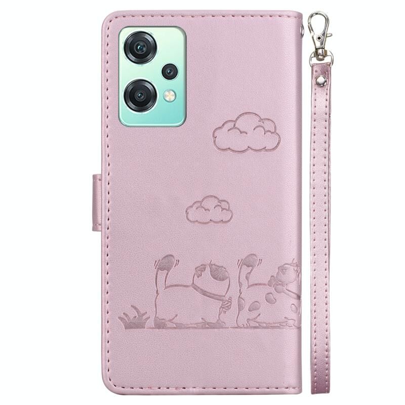 Θήκη τηλεφώνου από δέρμα με χαριτωμένες γάτες RFID για OnePlus Nord CE 2 Lite 5G (Χρυσό Ρόδι)