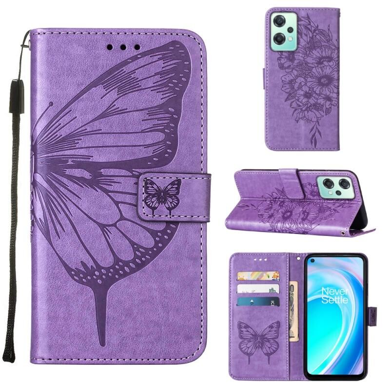 Θήκη τηλεφώνου από δέρμα με ανάγλυφο σχέδιο πεταλούδας για OnePlus Nord CE 2 Lite 5G (Μωβ)