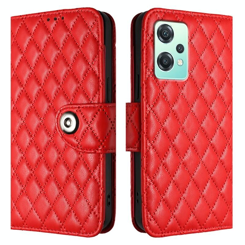 Για το OnePlus Nord CE 2 Lite 5G Rhombic υφή Flip δέρμα τηλέφωνο υπόθεση με κορδόνι (κόκκινο)