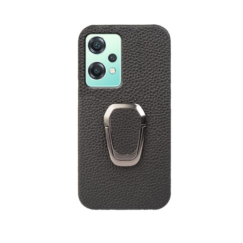 For OnePlus Nord CE 2 Lite 5G Ring Holder Litchi Texture Genuine Leather Phone Case(Black)
