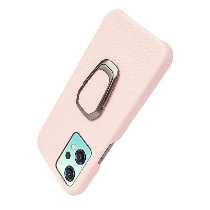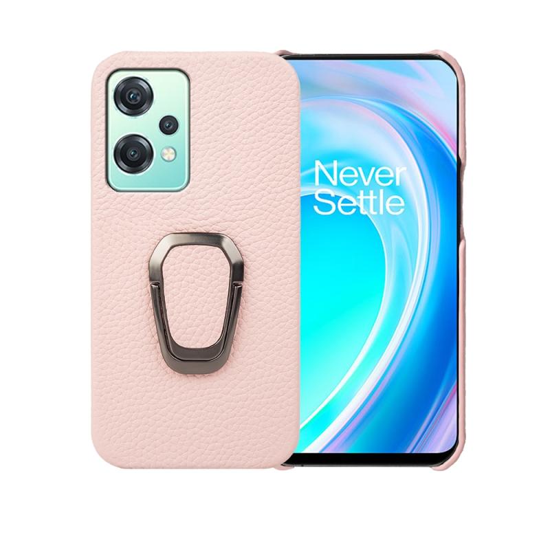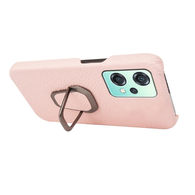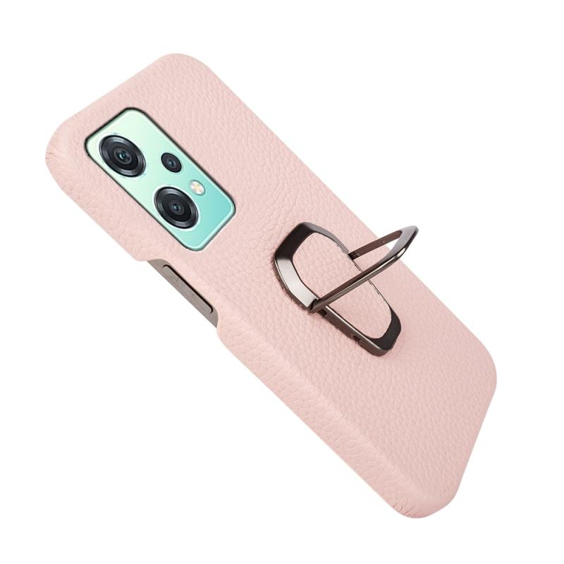 For OnePlus Nord CE 2 Lite 5G Ring Holder Litchi Texture Genuine Leather Phone Case(Pink)