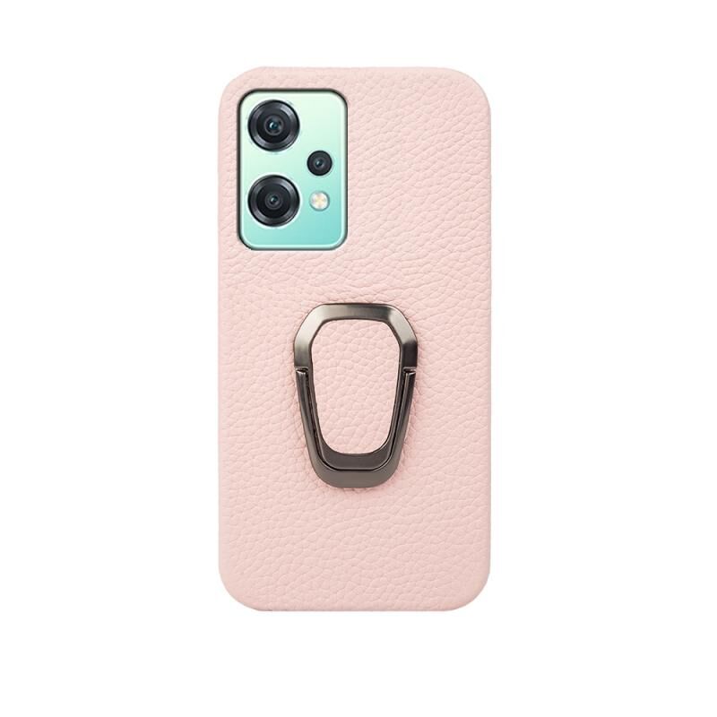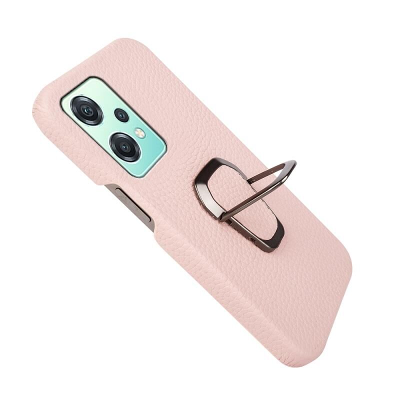 Θήκη τηλεφώνου από γνήσιο δέρμα με υφή λitchi και δακτύλιο στήριξης για OnePlus Nord CE 2 Lite 5G (Μαύρο)