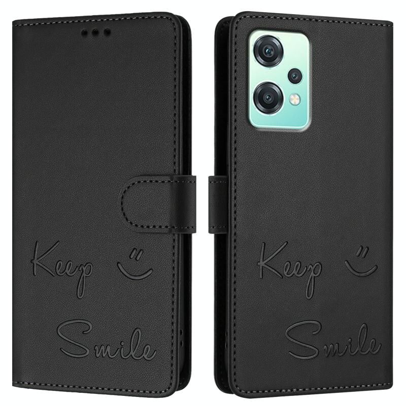Για OnePlus Nord CE 2 Lite 5G Χαμόγελο ανάγλυφο RFID δερμάτινη θήκη τηλεφώνου (Μαύρο)
