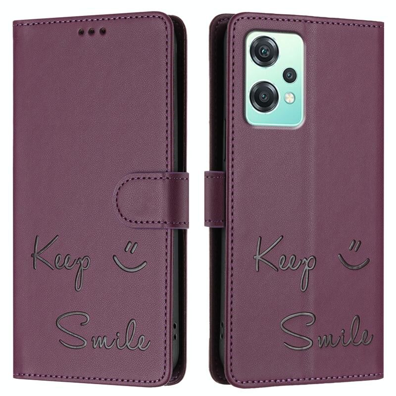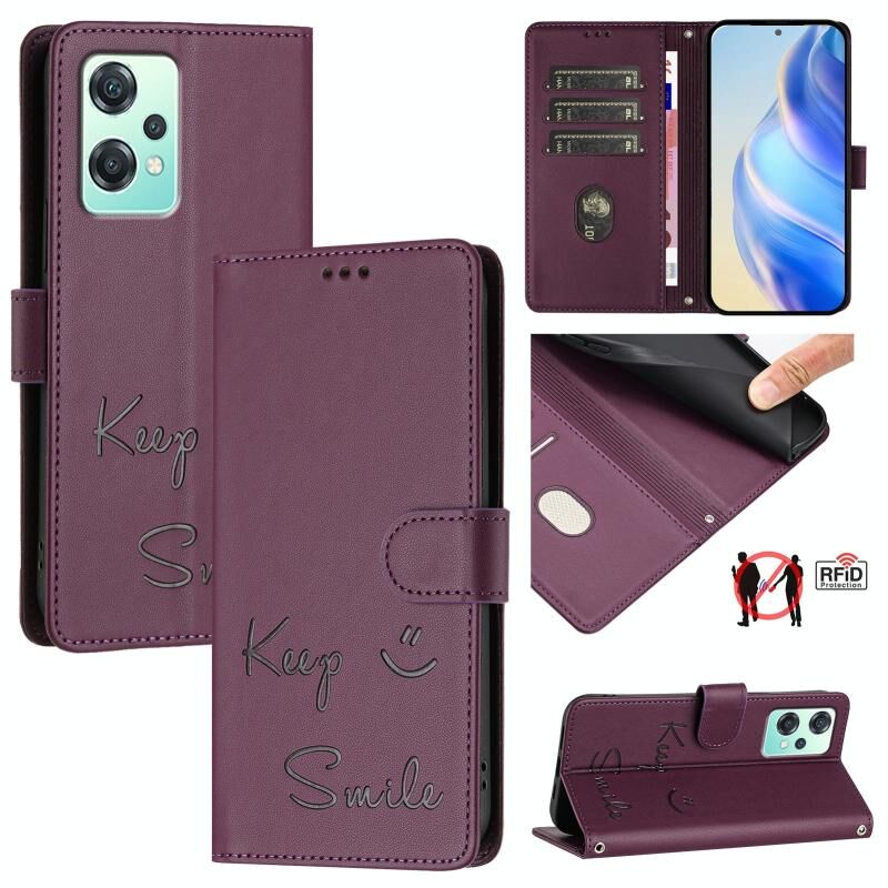 Για OnePlus Nord CE 2 Lite 5G Χαμόγελο ανάγλυφο RFID δερμάτινη θήκη τηλεφώνου (Violet)