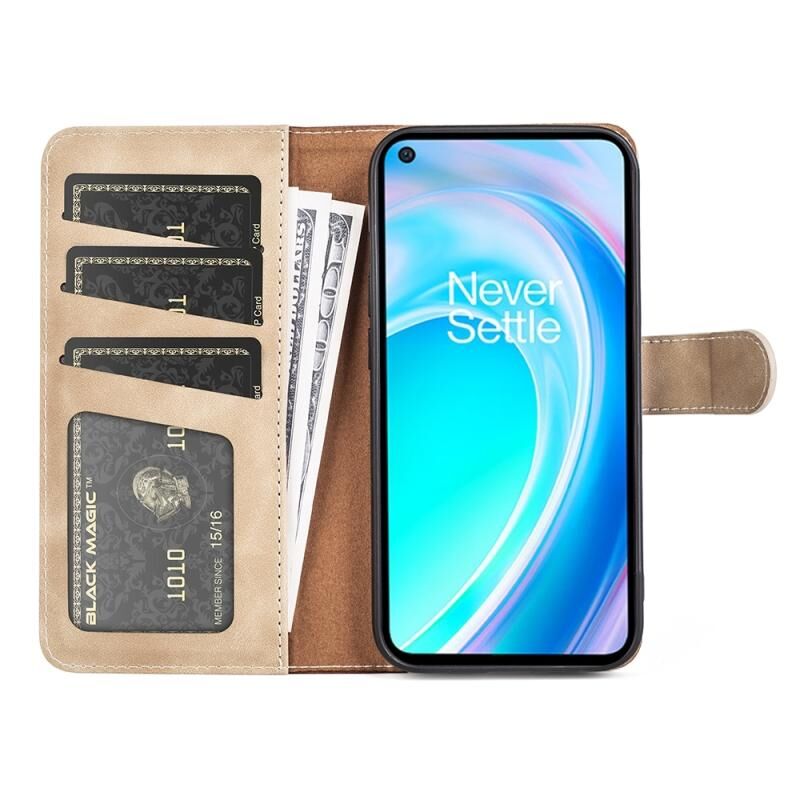 Θήκη τηλεφώνου από δέρμα με οριζόντιο άνοιγμα και ραφές για OnePlus Nord CE 2 Lite 5G (Μαύρο)