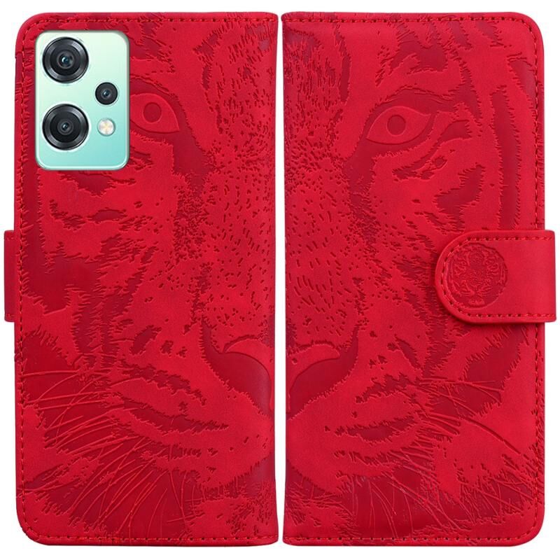 Για OnePlus Nord CE 2 Lite 5G Tiger ανάγλυφο μοτίβο οριζόντια Flip δέρμα τηλέφωνο υπόθεση (Κόκκινο)