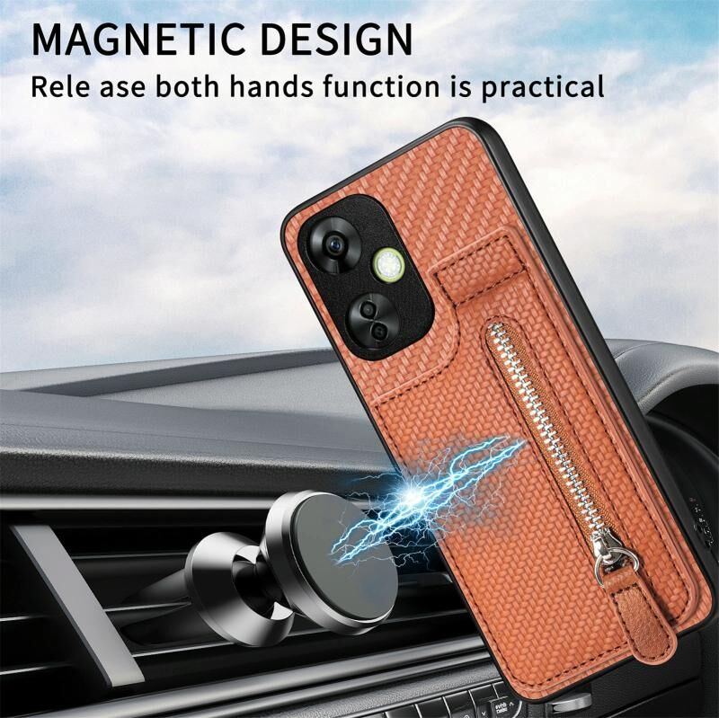 Για OnePlus Nord CE 2 Lite Carbon Fiber Κάθετη Flip φερμουάρ τηλέφωνο υπόθεση (χακί)