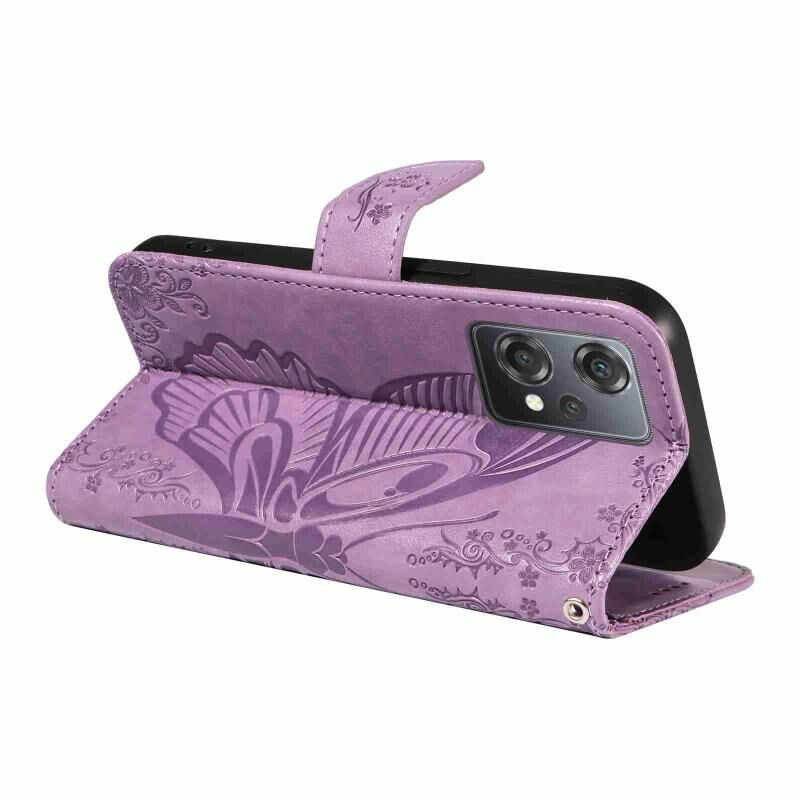 Θήκη τηλεφώνου από δέρμα με ανάγλυφο σχέδιο πεταλούδας Swallowtail για OnePlus Nord CE 2 Lite / Realme 9 Pro (Μπλε)