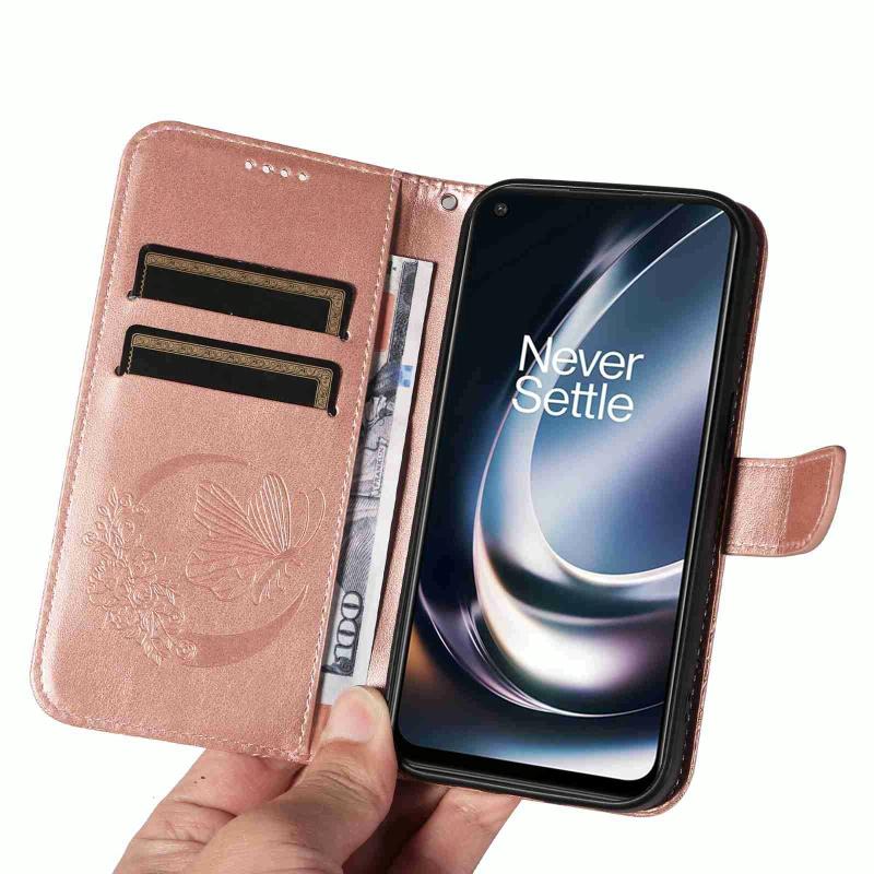 Θήκη τηλεφώνου από δέρμα με ανάγλυφο σχέδιο πεταλούδας Swallowtail για OnePlus Nord CE 2 Lite / Realme 9 Pro (Ροζ Χρυσό)