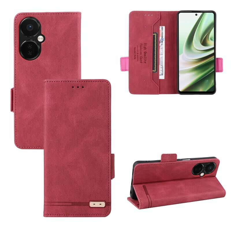 Για OnePlus Nord CE 3 5G μαγνητικό κούμπωμα δερμάτινη θήκη τηλεφώνου (κόκκινο)