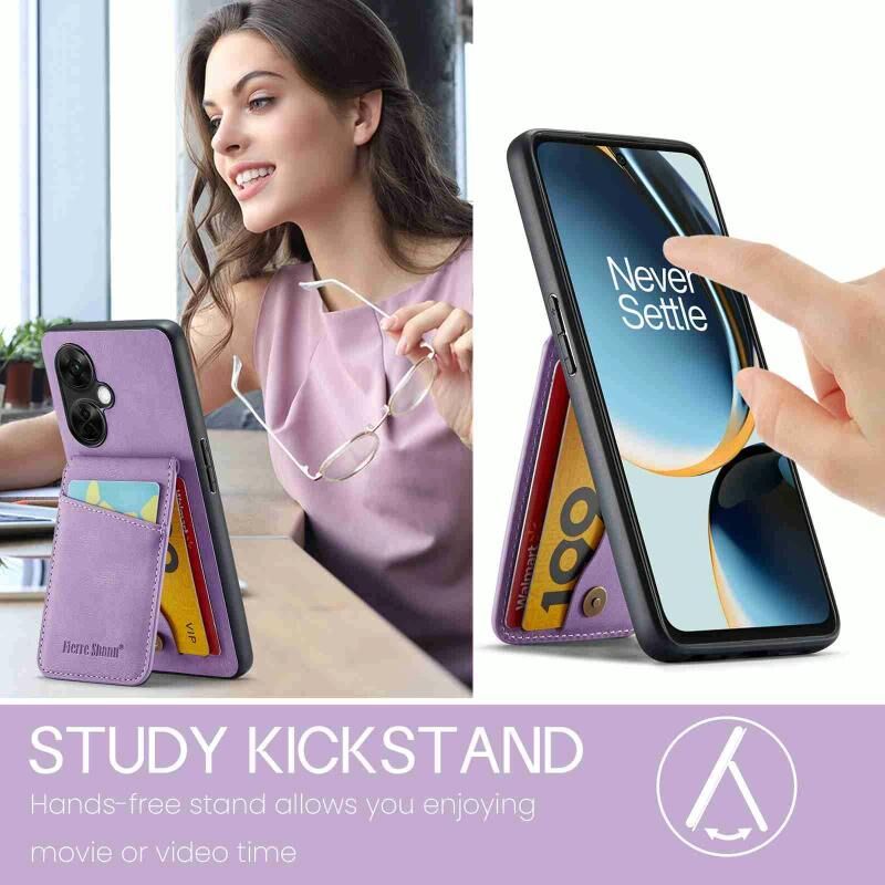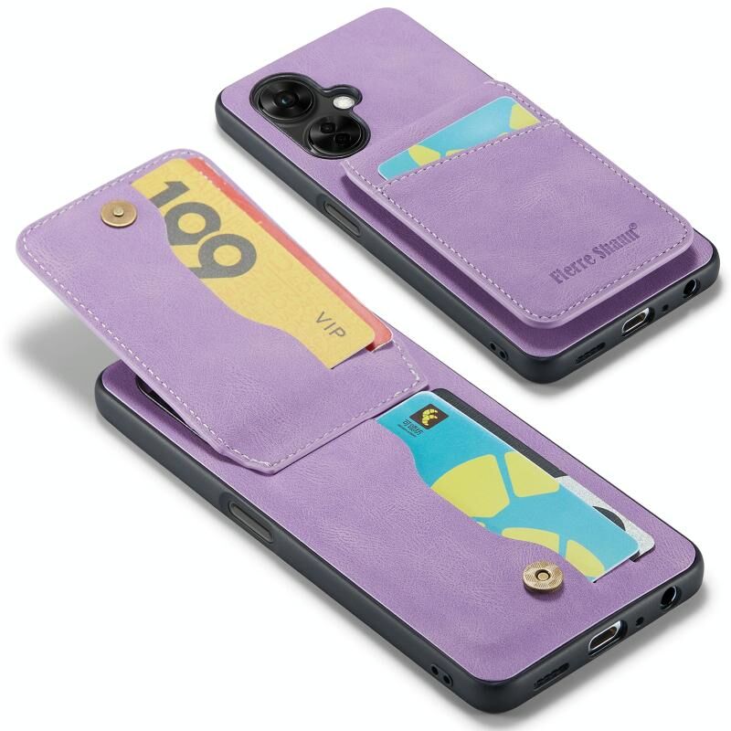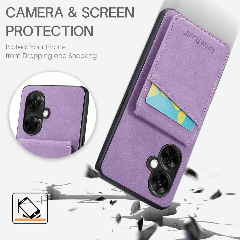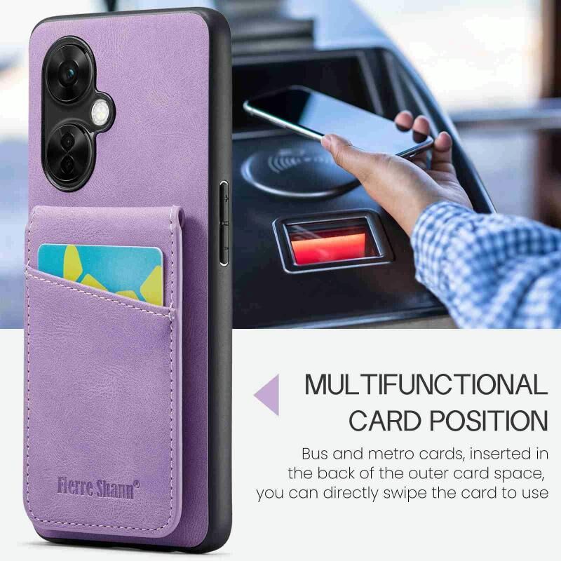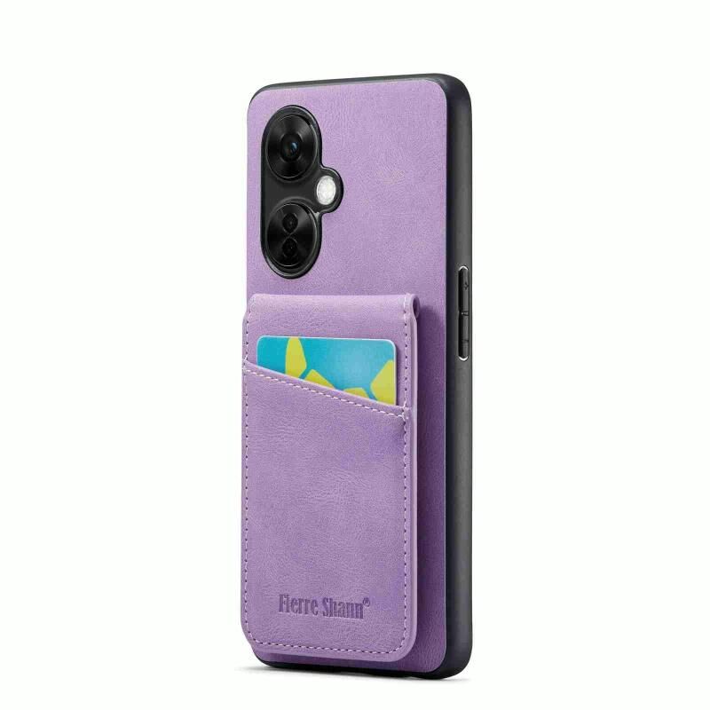 Για OnePlus Nord CE 3 / CE 3 Lite Fierre Shann Crazy Horse κάρτα κάτοχος πίσω κάλυμμα PU υπόθεση τηλεφώνου (μωβ) (FIERRE SHANN)