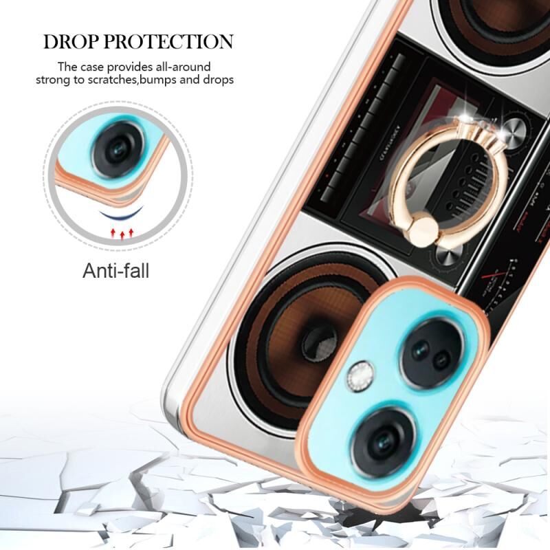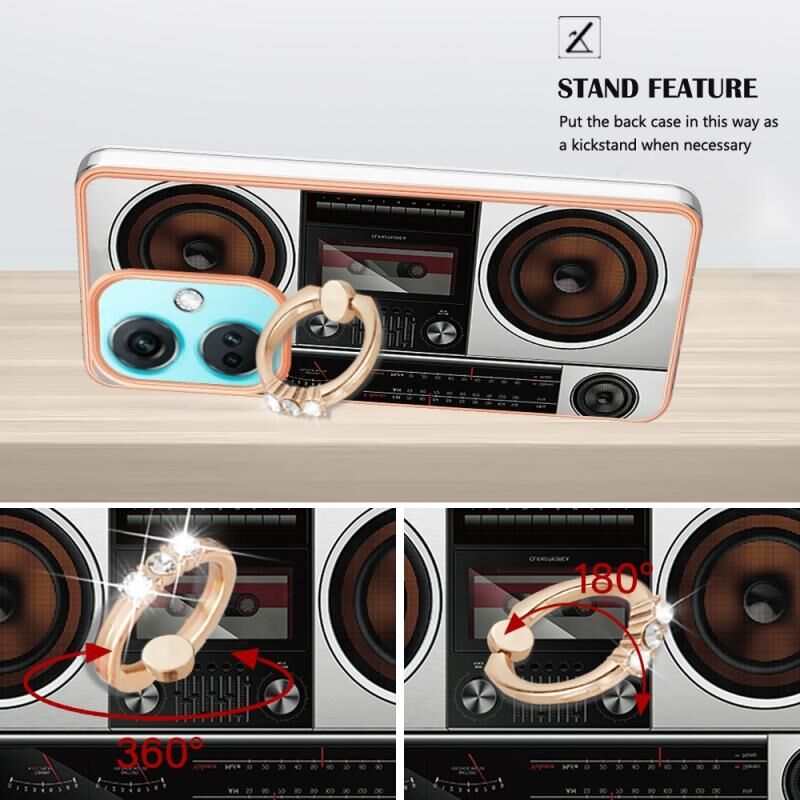 Θήκη τηλεφώνου για OnePlus Nord CE 3 με ηλεκτρολυτική επιμετάλλωση, διπλής όψης IMD με δακτύλιο στήριξης (Ρετρό Ραδιόφωνο)