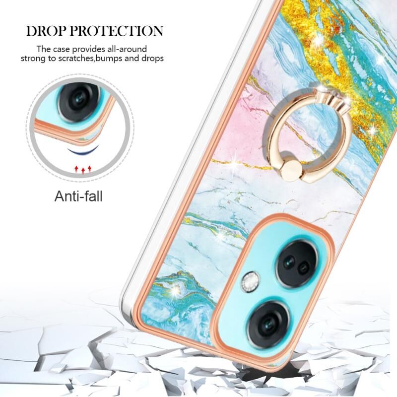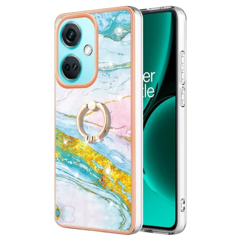 Θήκη τηλεφώνου OnePlus Nord CE 3 με Ηλεκτρολυτική Μαρμάρινη IMD TPU και Δακτύλιο Στήριξης (Χρυσό Ρόδι 005)