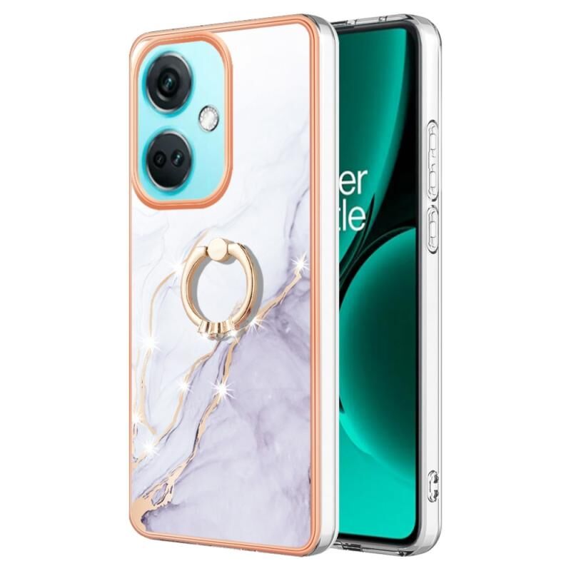Θήκη τηλεφώνου OnePlus Nord CE 3 με Ηλεκτρολυτική Επικάλυψη, Μάρμαρο IMD, TPU με Δακτύλιο Στήριξης (Λευκό 006)