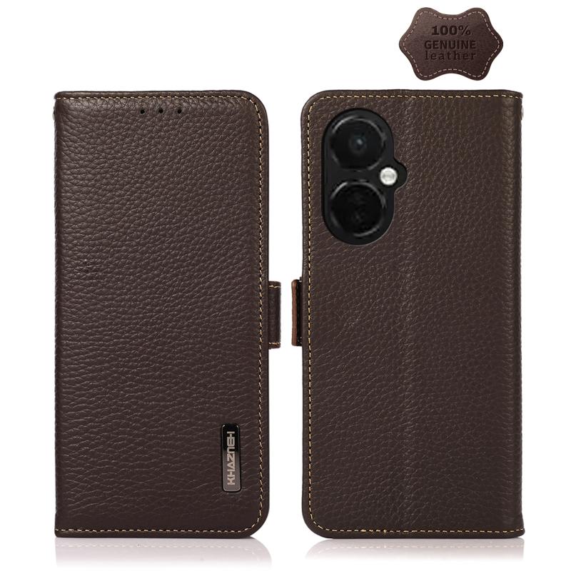 Θήκη τηλεφώνου OnePlus Nord CE 3 KHAZNEH με μαγνητικό κλείσιμο, από γνήσιο δέρμα Litchi και προστασία RFID (Καφέ)